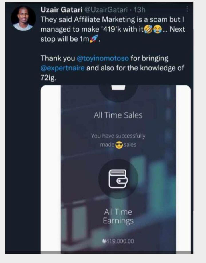 Although we have so many Affiliate Marketing Platform but I will be talking about Expertnaire Affiliate Marketing platform. Expertnaire Affiliate marketing deals mainly with Digital Products. You earn 50% commission selling other people's products. Meanwhile, I also started with a zero Internet Marketing Experience just like some of you. You see, you don’t have to be an internet guru before you can start affiliate marketing business and be able to make money on the internet. With the help of the best and easy method of affiliate marketing am going to teach you here, if you implement them, you’re good to go!